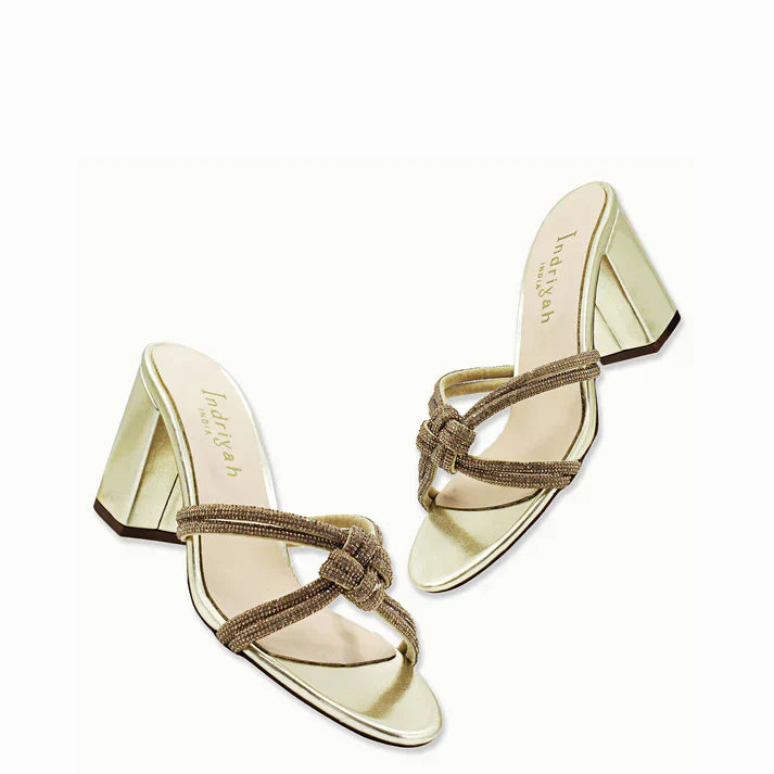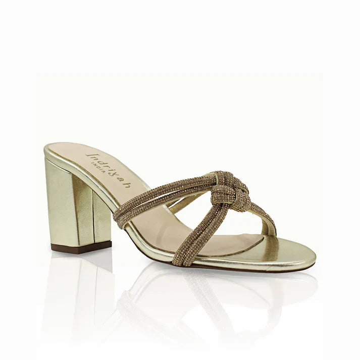 Discover the elegance of our Amelia gold sandals, where muted antique gold faux leather meets fashion-forward strap detail. A harmonious blend of sophistication and ease, perfect for every event.